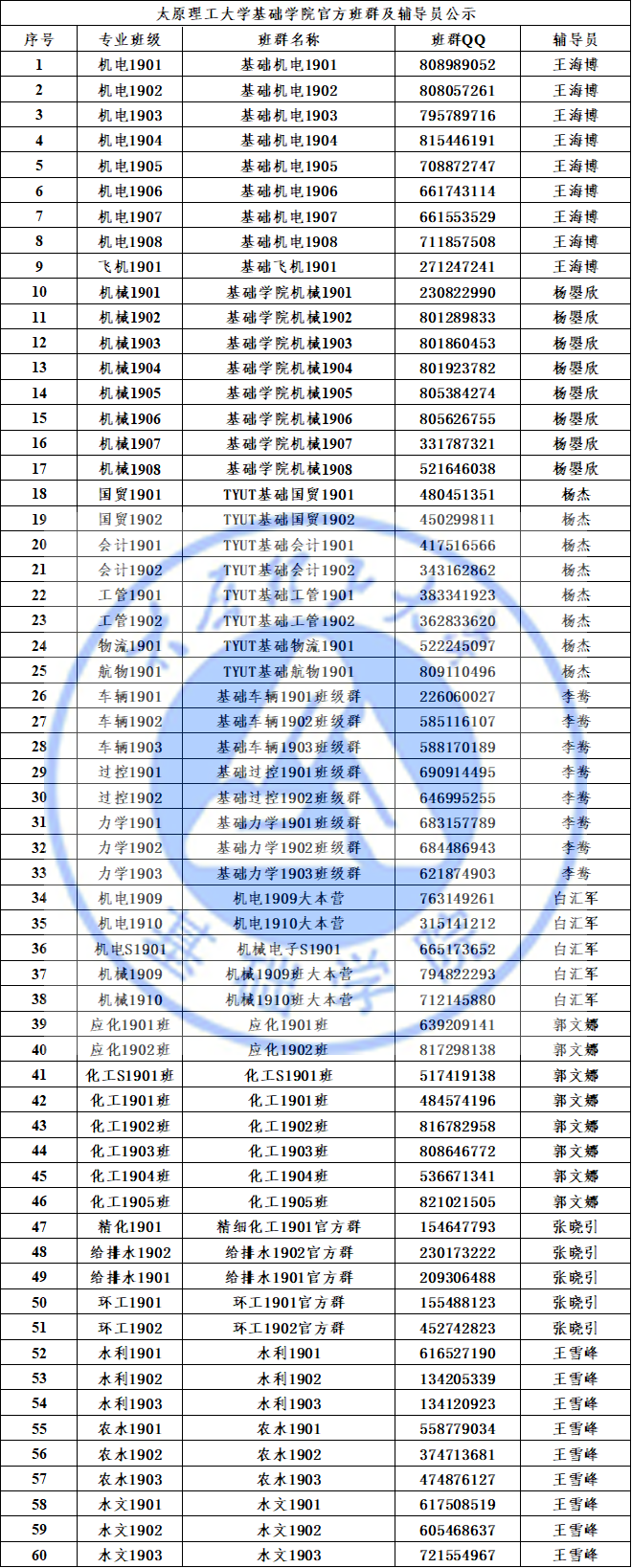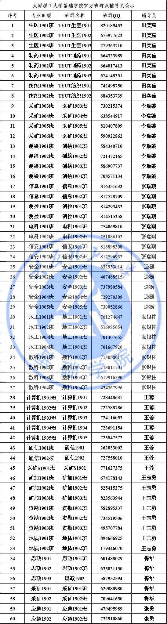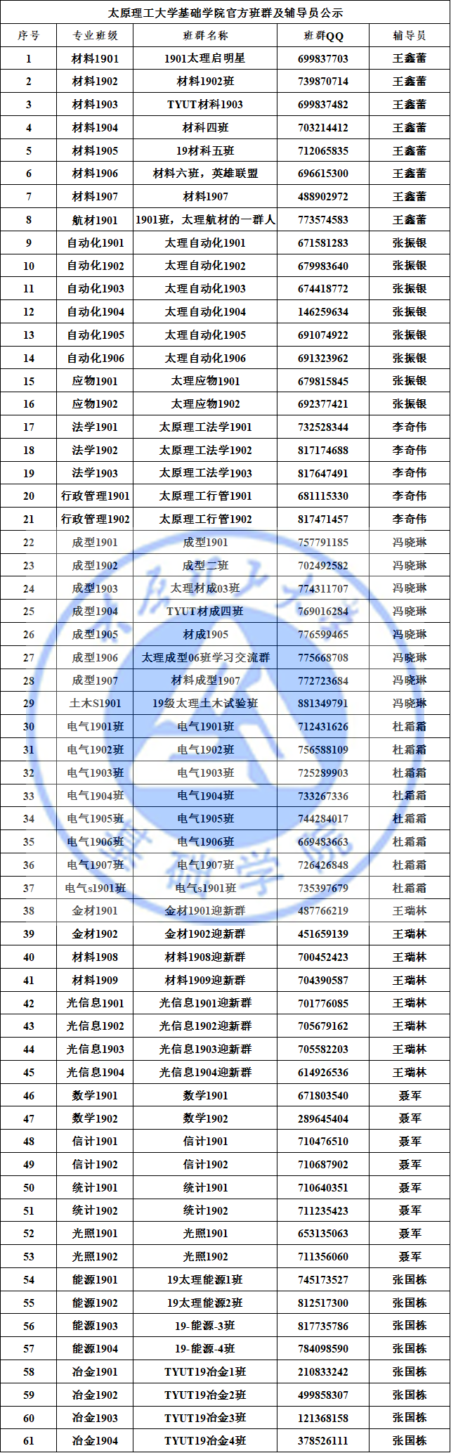 各班级官方QQ群由学院带班辅导员建立,旨在解答新生困惑,发布迎新及报到信息,提供周到服务。目前,基础学院新生入学教育的自学环节已经开始,希望还未加群的同学尽快行动,以免错过重要信息。现将基础学院2019级新生班级QQ群号公布如下。