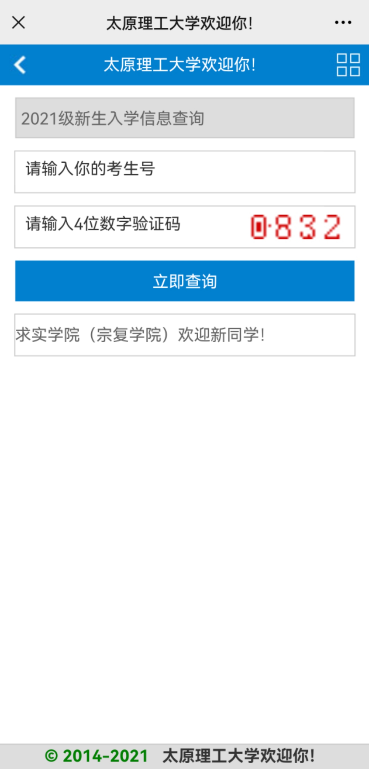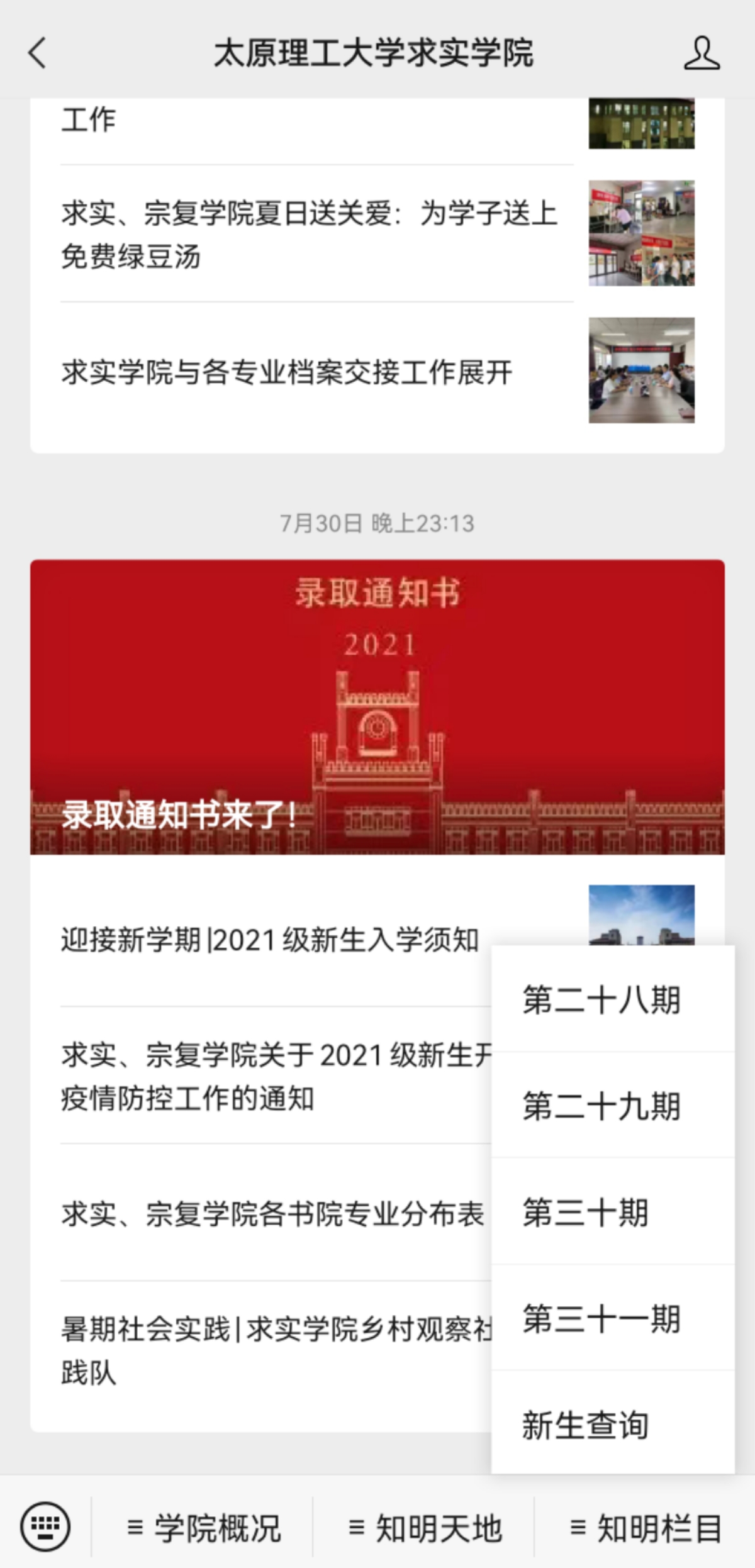 为了保证同学们的顺利报到和注册,学院开通了新生信息查询系统,输入考生号,即可查询您所在书院、班级、学号、通知书号及EMS快递号。具体流程如下:关注“太阳集成suncity求实学院”官方微信公众号,在“知明栏目”栏最下方点击“新生查询”进入查询页面,输入本人考生号及验证码进行查询。后续待录取工作全部完成后,还可以在该系统查询本人宿舍分配情况及辅导员联系电话等信息。