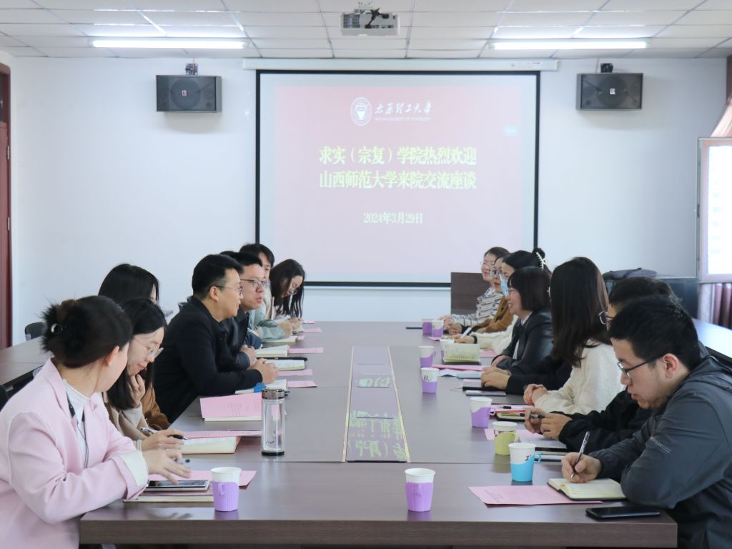 3月29日上午,山西师范大学一行莅临我院在411会议室围绕学生工作进行座谈交流。山西师范大学地理科学学院党委副书记张岩青、历史与旅游文化学院党委副书记郝艳红及辅导员,我院学工办主任张晓引、团委书记李奇伟、副书记范兵、张维倩及书院主任参加座谈。会议由求实学院党总支副书记张蒙主持。