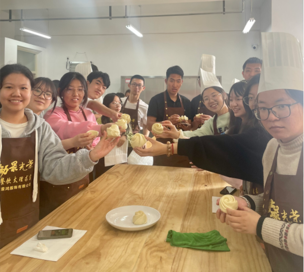 活动中,两位师傅耐心地给同学们传授了各种样式的面点的制作方法和注意事项,并讲授背后悠久的面食文化。同学们认真听讲、积极配合、细心探索,操作间俨然已经变成了欢乐的课堂。