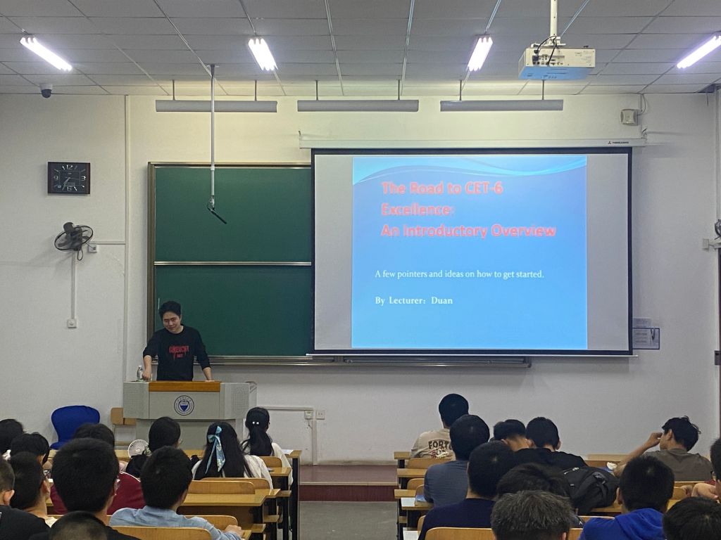 6月6日晚,宗复学院在行远B122举办大学英语六级“高效提分”专题培训讲座。本次讲座特邀外国语学院教师段宇彤主讲,辅导员毋津及140余名学生参加。
