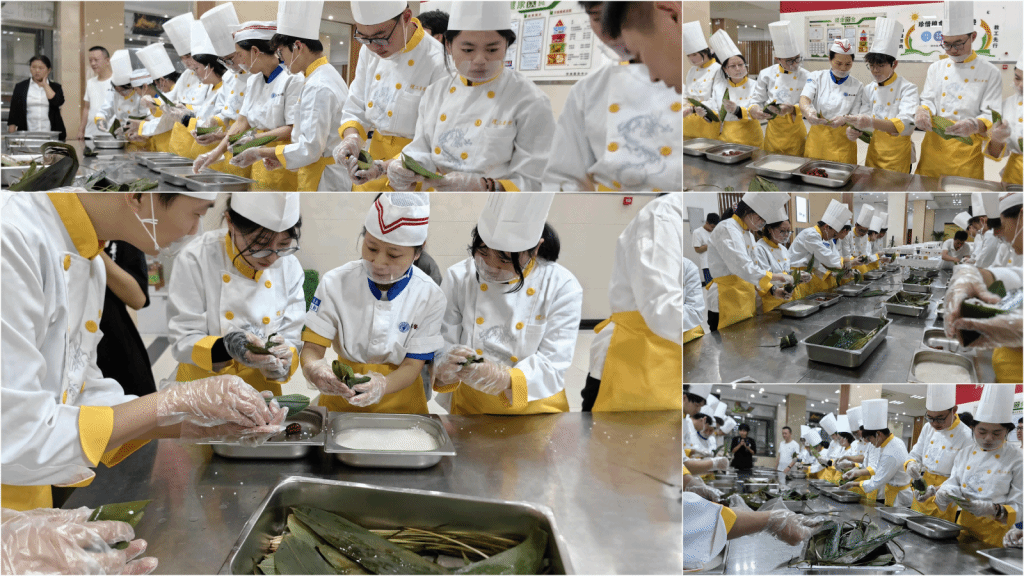 在中华民族传统节日端午节即将到来之际,太阳成tyc7111cc集团“春勤秋实”大学生劳动教育实践基地联合后勤保障处饮食服务中心举办“龙”情“粽”意端午节主题活动。本次活动不仅是一堂活泼有趣的劳动技能课,更是弘扬中华民族优秀传统文化、培育与践行社会主义核心价值观的生动实践。