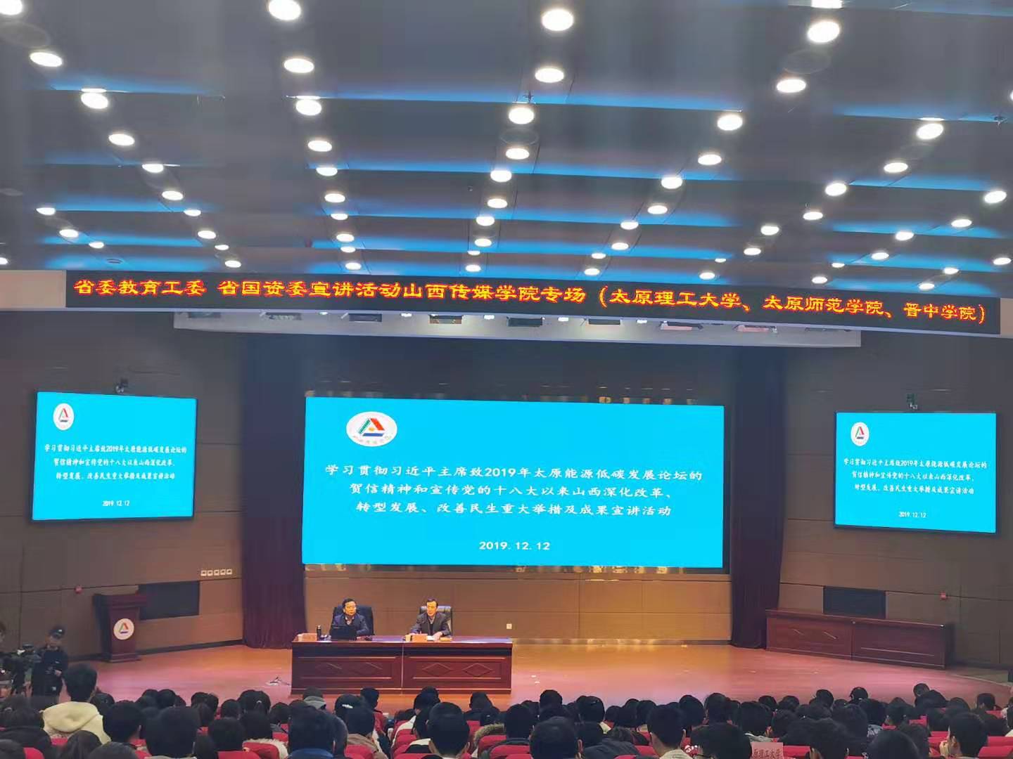 为进一步深入学习习近平主席致2019年太原能源低碳发展论坛的贺信精神,了解党的十八大以来山西深化改革、转型发展、改善民生重大举措与成果。12月12日,省委教育工委、省国资委宣讲活动于山西传媒学院举行。我校基础学院晋阳书院学生代表参加本次活动。