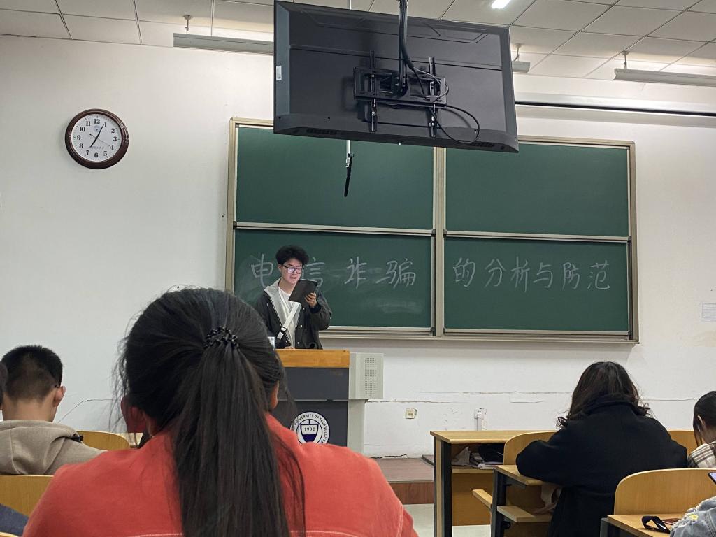 近期网络诈骗案件屡屡发生,为了提高文瀛书院学生的风险防范意识,增强其对电信网络诈骗的辨识能力,切实杜绝和防止电信网络诈骗案件的发生,2021年3月18日,我书院组织开展了防诈骗安全教育主题班会,文瀛书院思政专业和医工专业全体成员参加了本次安全教育活动。