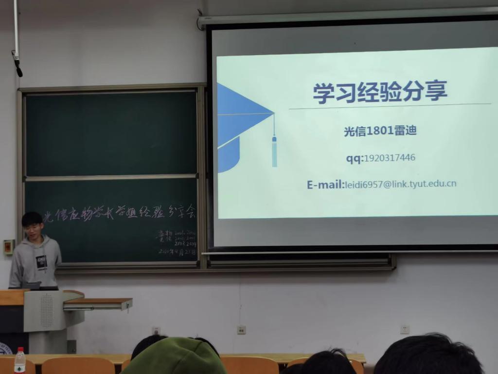 4月21日晚7点,令德书院光电信息科学与工程与应用物理专业在明向校区行思B115举行了“光信应物学长学姐经验分享会”,由辅导员王鑫蕾邀请了物电学院2018级三位优秀学生代表。18级学长学姐分别从学习规划、保研就业、科技竞赛、生活管理等方面进行了经验交流与分享,2020级光电信息科学与工程与应用物理专业全部学生参加了本次大会。