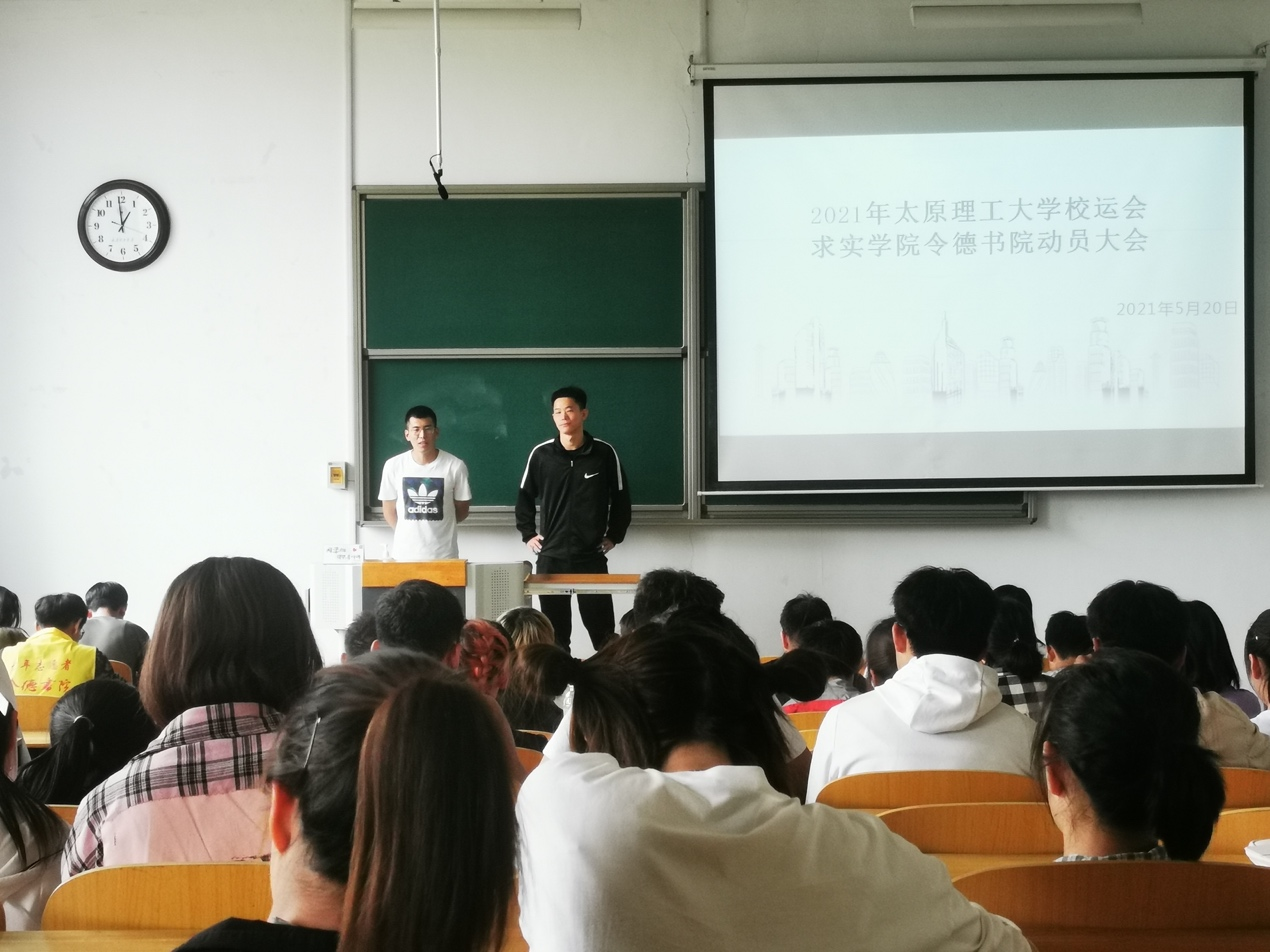 2020年5月20日中午12点30分,由求实学院令德书院主办的校运动会动员大会在太阳集成suncity明向校区行思楼B-118举行。求实学院院长、宗复学院副院长宋燕教授出席了本次会议,令徳书院全体老师、全体运动员、志愿者代表、学生代表,体育学院训练教练参加了此次会议,李瑞波主持会议。
