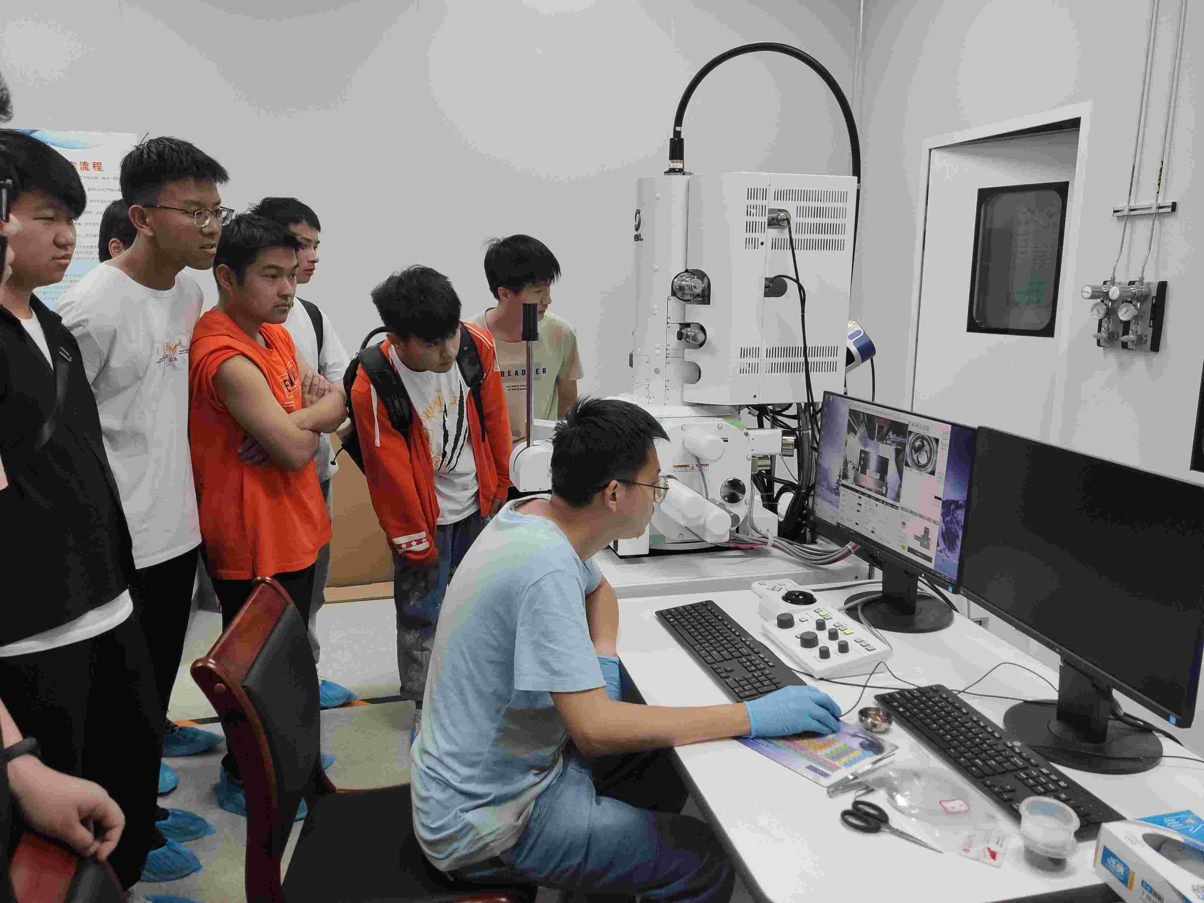 在参观分析测试中心时,同学们认真聆听每个实验室负责老师的讲解和观摩具体的操作步骤,不仅对分析测试有了比较系统的认知,还接触到各种智能化的检测设备,近距离了解了科学研究的过程和严谨的学术态度。