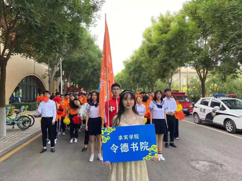 地质2002班纪家骏担任护旗手,4名书院教职工和68名学生组成了令德方阵,身着橘色运动服的令德学院运动员们伴着响亮口号“令德令德,豪情自得,令德有我,冠军必得”,步伐整齐地走过主席台,展示了他们的昂扬斗志。