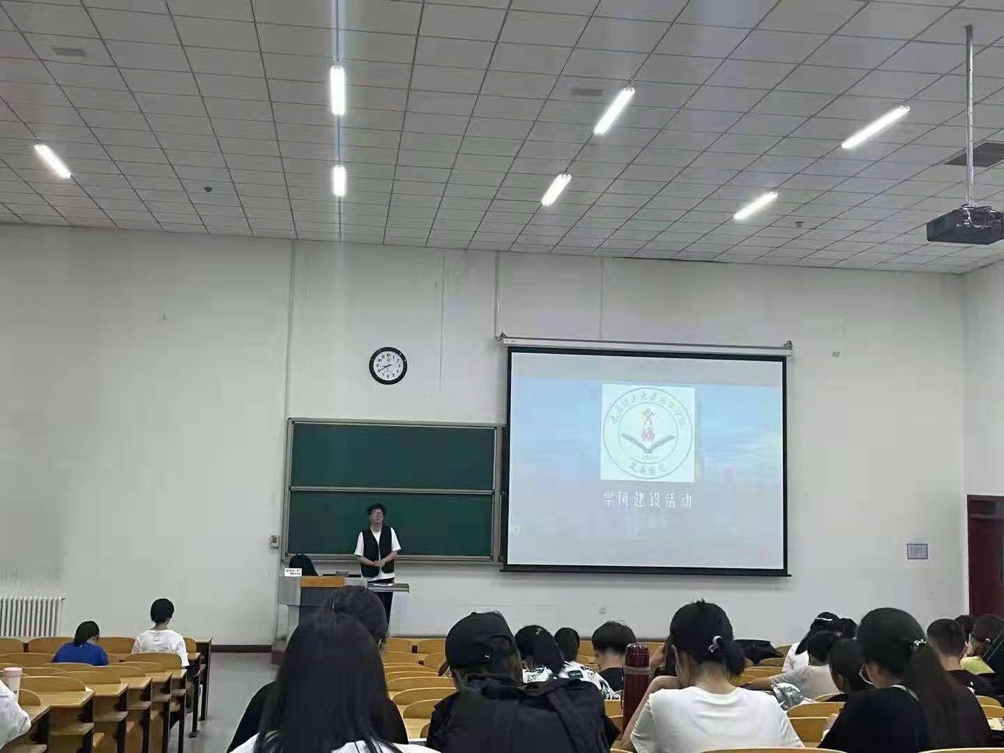 为了增强学生自主性、创造性,提高学习意识,在各班级之间形成“遵纪律、找差距、学先进”的良好局面,积极营造人人重视学风建设,人人参与学风建设的浓郁氛围。太阳集成suncity求实学院文瀛书院于2021年6月17日晚7:30在明向校区行思楼召开学风建设主题班会。本次班会由文瀛书院专业学生会主办,思政医工团总支全部成员参加,辅导员冯晓琳出席活动。