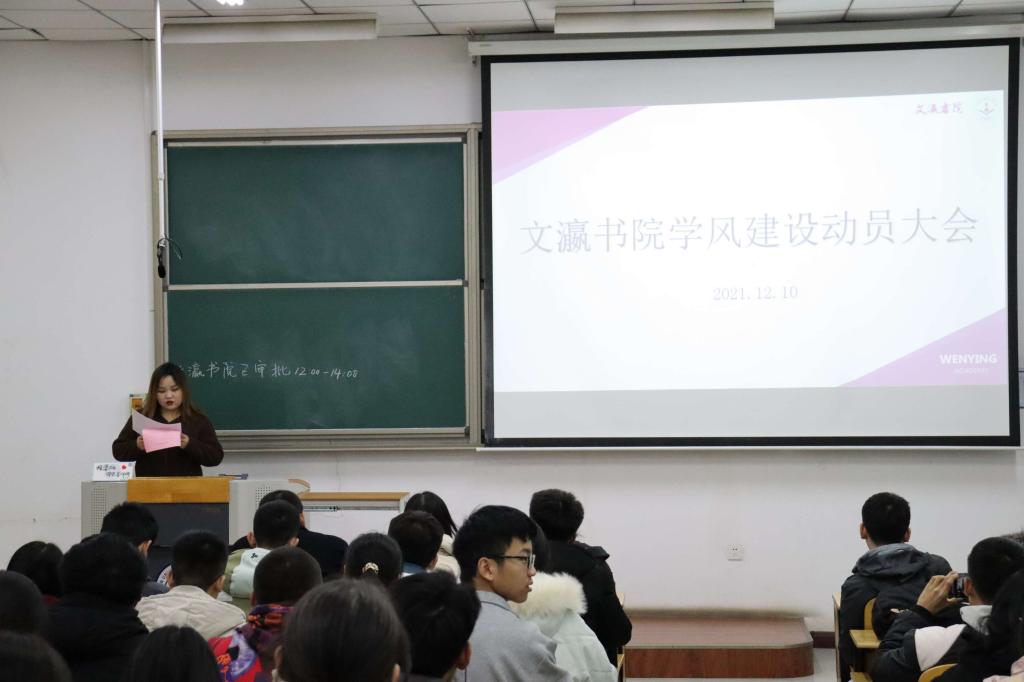 期末考试将至,为提振士气,鼓励同学们积极备考,文瀛书院于2021年12月10日在行思楼A101组织开展“学风建设动员大会”。本次会议由冯晓琳老师主持,求实学院党委副书记武佐君,书院分管领导张培智,学工办主任张晓引,书院全体辅导员以及书院学生会、团委、自律委、融媒体等组织负责人,班长、团支书代表等参会。