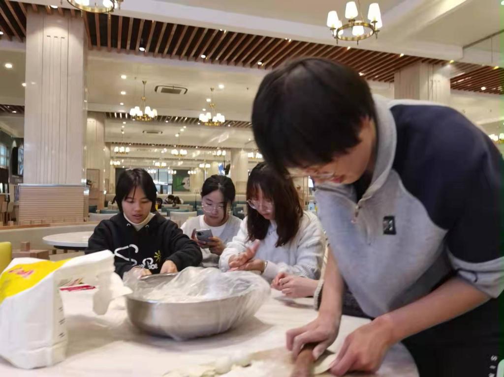 俗话说“冬至不端饺子碗,冻掉耳朵没人管”,在冬至时节吃饺子已经变成了一种习俗。为了让学生过一个温暖、温馨的传统节日,12月21日下午在明向校区北区餐厅一楼,辅导员姚冬洁带领光信2102,2103班开展了一次别有风趣的冬至包饺子活动。