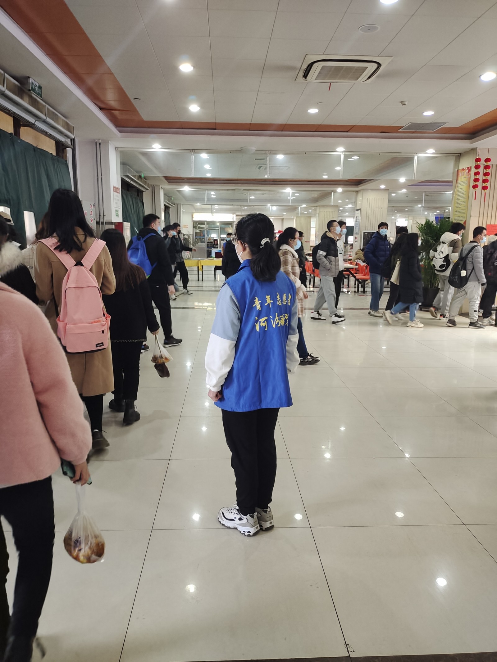 面临严峻的疫情考验,进一步扎实推进学校常态化疫情防控工作,河汾书院组建了疫情防控志愿服务队伍,经过系统的培训,于3月1日起协助餐厅进行秩序维持和就餐引导工作。