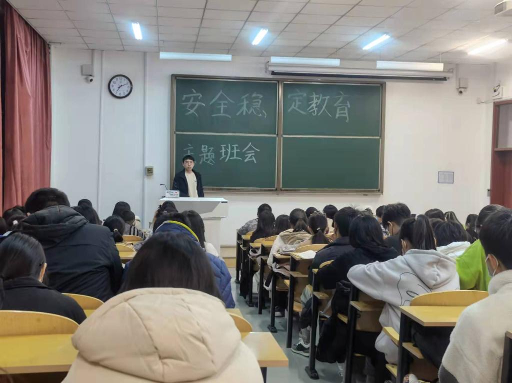 在班会上,孙老师强调了四点:一.积极响应疫情防控各项政策。二:凝聚班风,加强班级学风建设。三:守住安全底线,共建安全校园。四:合理解压,保持身心健康。孙老师在班会中提醒同学们需要注意身体,保持良好的宿舍卫生,合理的排解自身压力,学会利用身边资源,学校建有心理咨询室和解压室,有需求的同学们可以预约前往。