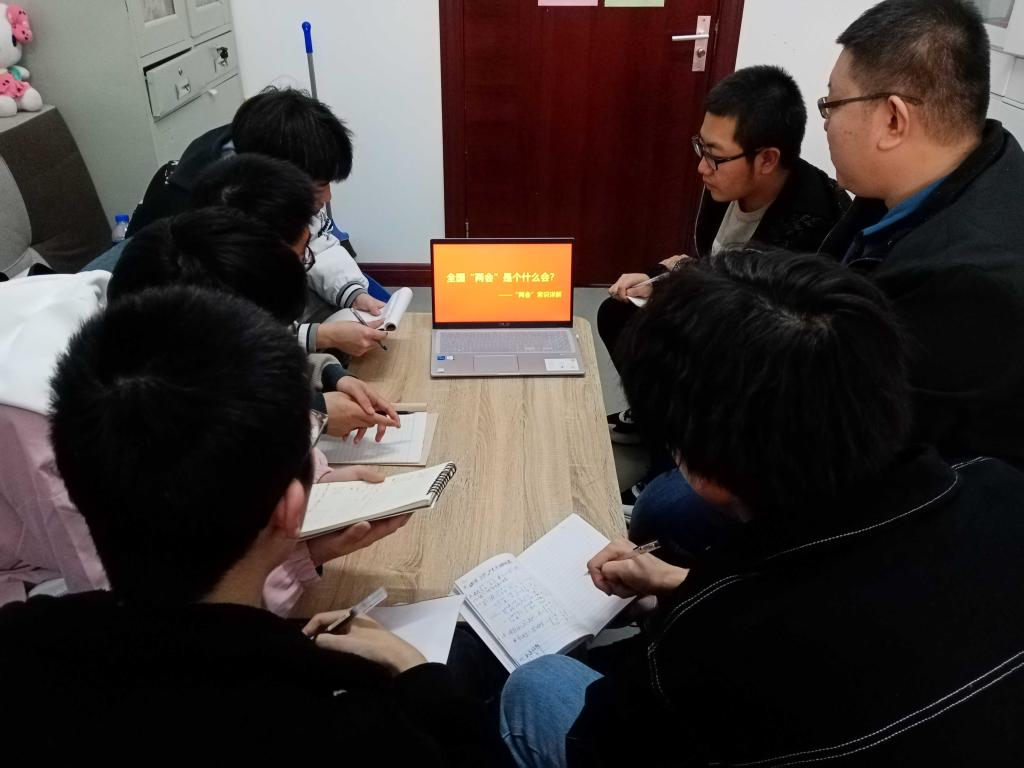在学习研讨环节,工作坊指导教师孟子超首先为同学们细致讲解了何为两会,以及全国人民代表大会和中国人民政治协商会议的各项基本知识点,使同学们对于两会常识有了更多、更清晰的认识。孟子超随后谈到:“政府工作报告既全面总结了过去一年取得的成绩,又部署了2022年的重点工作和任务,涵盖方方面面,关乎国计民生,与我们每个人的生活都息息相关,令人振奋,催人奋进。今年两会在我国‘十四五’良好开局这一新起点胜利召开,青年学子更应聚焦两会,砥砺精神,奋楫笃行,彰显担当,为中华民族伟大复兴贡献青春力量。”