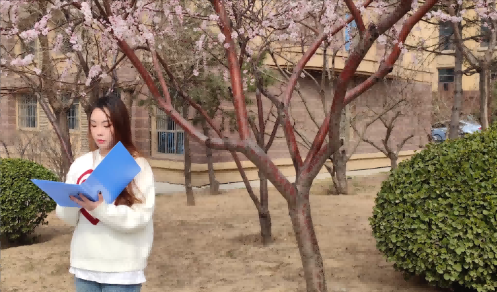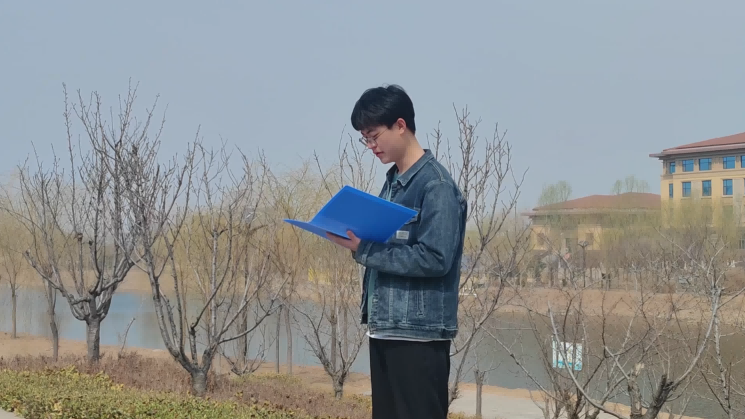 3月20日上午,活动组以学校南门河边、桃花树下等校园优美风景为背景,对优秀朗诵作品进行录制。朗诵题材各异,有对祖国的热爱,对人生意义的思考,也有对爱情的深刻认识,无不深刻展现了当代大学生的风采与多元认知。