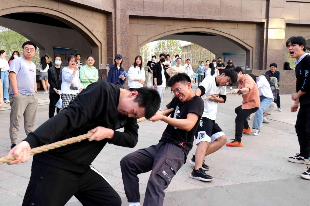 本次趣味运动会共开展单人跳绳、集体跳大绳、拔河及单人踢毽子四个项目的角逐。首先进行的是跳绳比赛,阳光洒在飞扬的绳端,投下了同学们矫健的美好身姿,大家跃跃欲试,都尽力为自己的班级增光添彩。第二项是班级集体跳大绳比赛,旋转着,跳跃着的是我们的热情;飞舞着,挥洒着的是大家的汗水;欢笑着,快乐着的是我们美好的大学生活,是我们珍贵的青春年华。没有人抱怨,没有人诉苦,只有同学们不断地鼓励,一声声加油使班级拧成一股劲,班级的凝聚力在其中得到了增强。第三项是踢毽子比赛,也是最具趣味的一项,欢声笑语萦绕在整个求实学院大院的上空,同学们的笑脸勾勒出集体活动的魅力。下午16时进行最后一项——拔河比赛,也是竞争最激烈、最精彩的一个比赛项目。8个班80名参赛队员都表现出了极强的斗志,齐心协力,勇往直前。尽管比赛有输有赢,但大家都赛出了水平,赛出了风格,胜不骄,败不馁,充分展现了当代青年人的风采。车辆2101班宗晓旭同学表示:“在封闭校园管理的环境下,开展这样能让全体同学共同参与的健身性体育项目是同学们非常急需的,大家参与其中,享受其中,团结一心,拼尽全力,让青春能在疫情之下散发无限光芒。”下午19时,本次趣味运动会圆满结束。