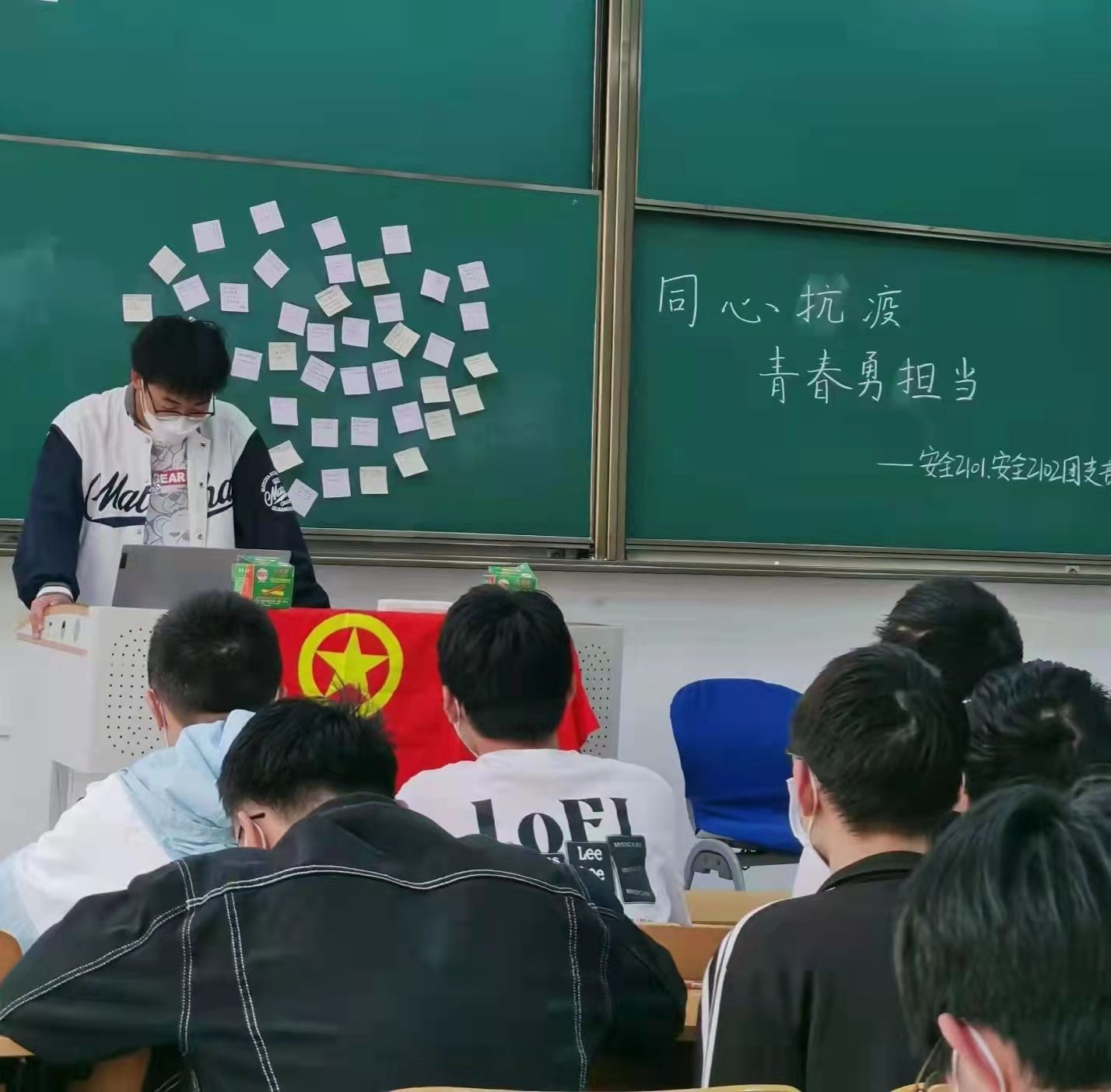 万物复苏必有时,疫去安来春可期。在这芳菲四月,为使团支部全体青年学生更加深入学习了解疫情防控知识,提高自身防控意识,积极配合学校疫情防控工作,齐心协力攻克难关,打赢疫情防控阻击战,在团总支统一安排下,4月26日16时,安全2101、2102团支部联合组织开展了“同心抗疫,青春勇担当”主题团日活动。