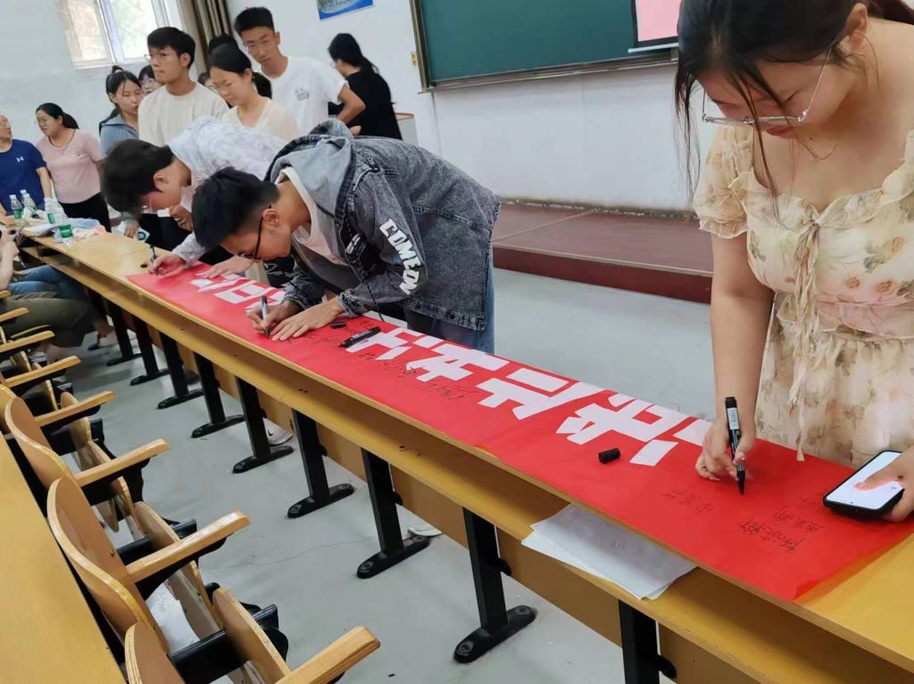 最后,郭苗、朱仙美老师向全体同学发起“诚信考试·你我同行”校内百人签名活动,希望大家科学安排时间,查漏补缺、认真备考,并承诺在即将到来的四六级考试和期末考试中,遵守考纪、诚信应考,以诚信展现良好学风。