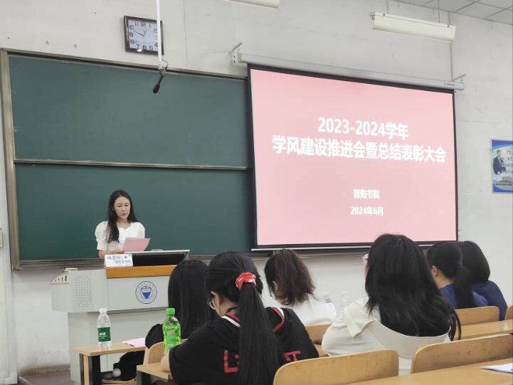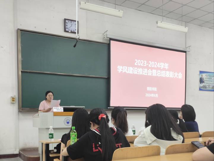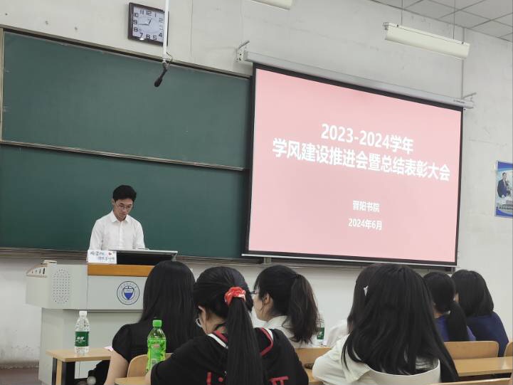 会议伊始,李皓青老师作《晋阳书院2023-2024学年学风督查工作总结》的报告,就“第一课堂”、晚自习、学生宿舍等方面督查情况进行了详细分析与总结,既肯定了现阶段取得的成效,也指出了工作中存在的问题。