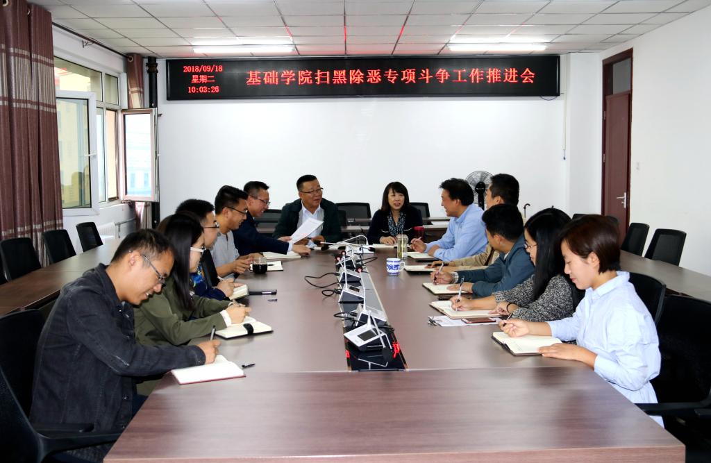 9月18日上午,为了进一步保护学院师生合法权益,优化育人环境,营造扫黑除恶专项斗争浓厚氛围,学院党总支在411会议室召开扫黑除恶专项斗争工作推进会,参会人员有学院党政领导班子成员、三办主任、团委书记和四位支部书记,会议由党总支书记张少临主持。