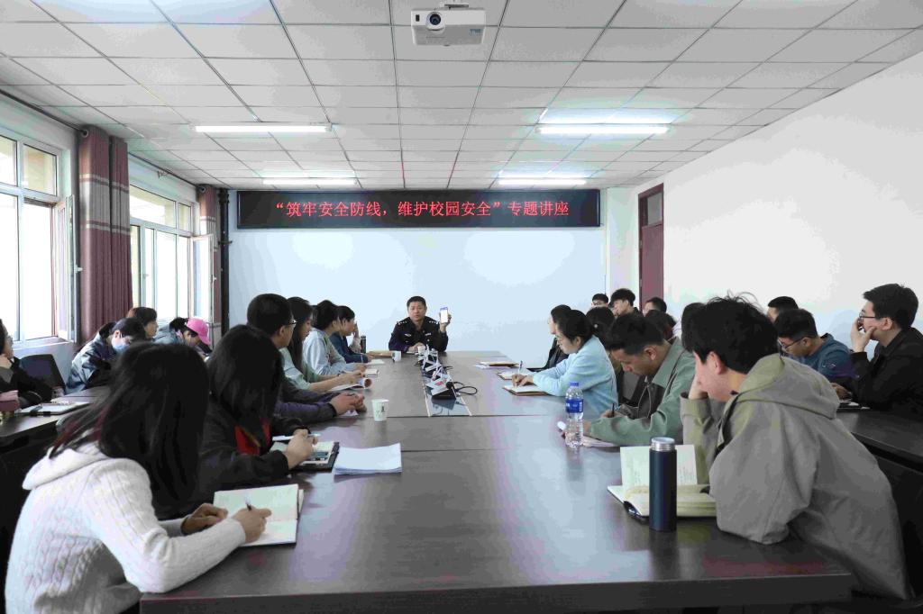 为进一步提升辅导员队伍素质能力,增强辅导员队伍在学生管理工作中的安全防范意识,扎实做好校园安全稳定工作,4月19日上午,求实学院在411会议室开展“术业专攻”系列讲座之“筑牢安全防线,维护校园安全”。本次培训邀请晋中市公安局驻高校分局潘建刚警官进行专题讲座,学院全体辅导员参加培训,培训由求实学院党总支副书记张蒙主持。