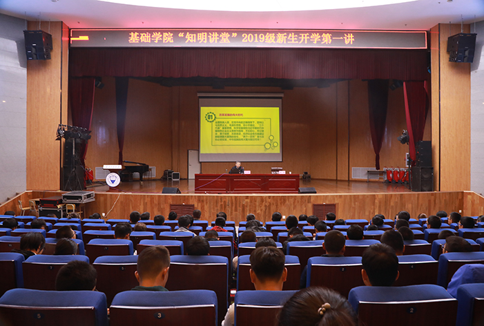 10月16日,校党委书记吴玉程应邀做客基础学院“知明讲堂”,为2019级新生带来开学第一讲。讲座以“青春当勉励,岁月不待人”为题,引导激励广大学生珍惜青春,把握机遇,努力奋进,成长为德智体美劳全面发展的社会主义建设者和接班人。基础学院全体教职工和700余名学生代表聆听了讲座。