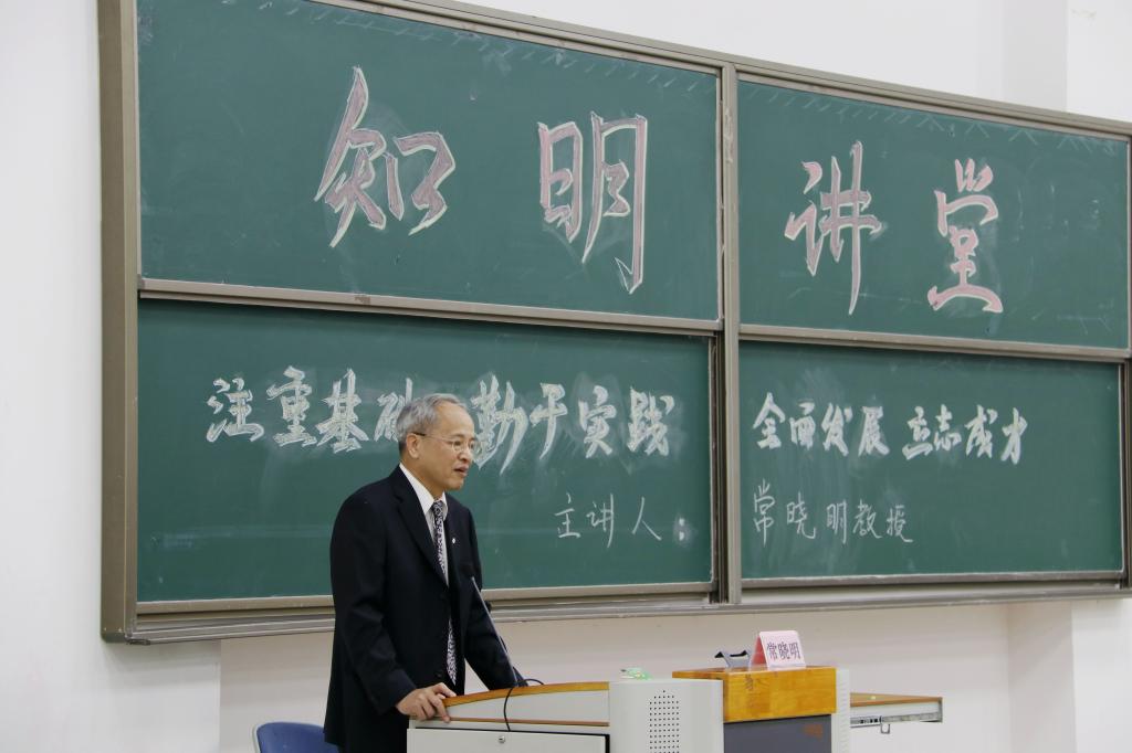5月10日晚,基础学院邀请太阳集成suncity“晓明研究室”创始人常晓明教授做客学院“知明讲堂”,在明向校区行思楼C122为师生们(包括全体工科试验班学生)进行了《注重基础 勤于实践 全面发展 立志成才》的讲座。讲座由基础学院副院长(主持工作)宋燕主持。